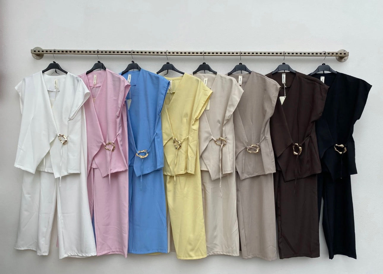 Il Set Meli è un insieme di due pezzi disponibili in vari colori, progettato per offrire una combinazione di stile e versatilità. Questo completo consente diverse possibilità di abbinamento, adattandosi a contesti formali e informali. Ideale per chi cerca un'opzione praticità e moda senza tempo.